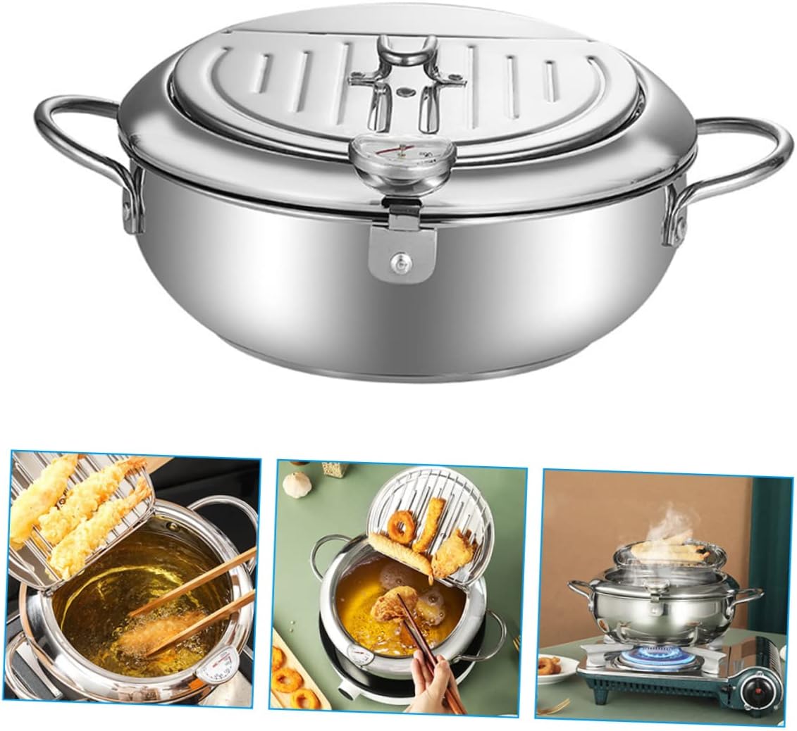 Package Include 1 fryer Features -Color:Silver fryer pot with basket -Material:Stainless steel gas deep fryer -Size:21.00X21.00X13.50cm/8.25X8.25X5.31in deep fryers - Outstanding workmanship, reasonable design, stable and practical, will bring you a portable deep fryer pot. - It is characterized by a sturdy and reliable texture, not easy to break, serving you long time home deep fryer pot. - Made of high grade stainless steel material that holds heat the idea of deep frying deep pot. - Drain racks that the pan to keep food less greasy and crisper japanese fryer pot. - Works with all types of stovetops, gas, electric, glass and even flame grills pot for deep frying.Goods Informationkitchen deep frying pot Features the stainless steel material, which has high durability, not easy to deform.Deep Fryer for Kitchen This deep fryer is made of , which can withstand use.deep fryers Fine workmanship, practicality