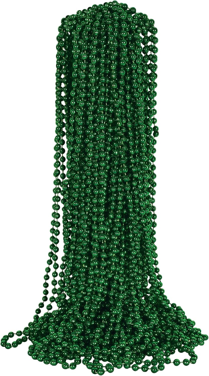 Beistle Gold Party BeadsAdd vibrant color and classic festive style to event décor and costume looks with Beistle Gold Party Beads — lightweight plastic bead necklaces designed for bold visual impact and versatile use. Featuring rich gold-colored beads with a glossy finish, these necklaces deliver a timeless party look ideal for celebrations, themed displays, and spirited events.This set includes 50 individual bead necklaces, each measuring approximately 33 inches long and constructed with round plastic beads. The lightweight design allows for comfortable wear while maintaining durability for repeated decorative or display use. The uniform bead size and consistent color create a cohesive, polished appearance when worn individually or layered together for enhanced visual effect.Perfect for Mardi Gras celebrations, New Year’s Eve events, themed parties, stage performances, photo booth setups, and novelty décor, these gold party beads function as wearable accessories or decorative accents. Use them to enhance table displays, costume styling, or coordinated event themes.