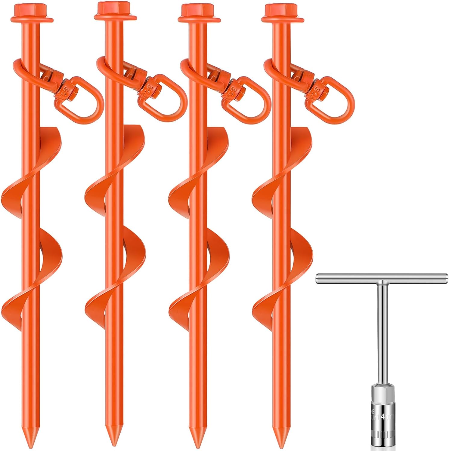 Features: Nice gifts: These ground anchor stakes are suitable for sending to your friends, colleagues, neighbours, family members, relatives and others you care and love, they will be happy to receive these gifts. A good helper: Trampoline stakes are suitable for people who like camping, suitable for outdoor activities, whether fixed outdoor camping equipment or secured animals, they are the ideal tools. Specifications: Material: metal Color: silver Size: about 30 x 3 cm/ 12 x 1.2 inches Package includes: 4 x Ground anchor 1 x T handle hex wrench Notes: Manual measurement, please allow slight errors on size. The color may exist a slight difference due to different screen displays.