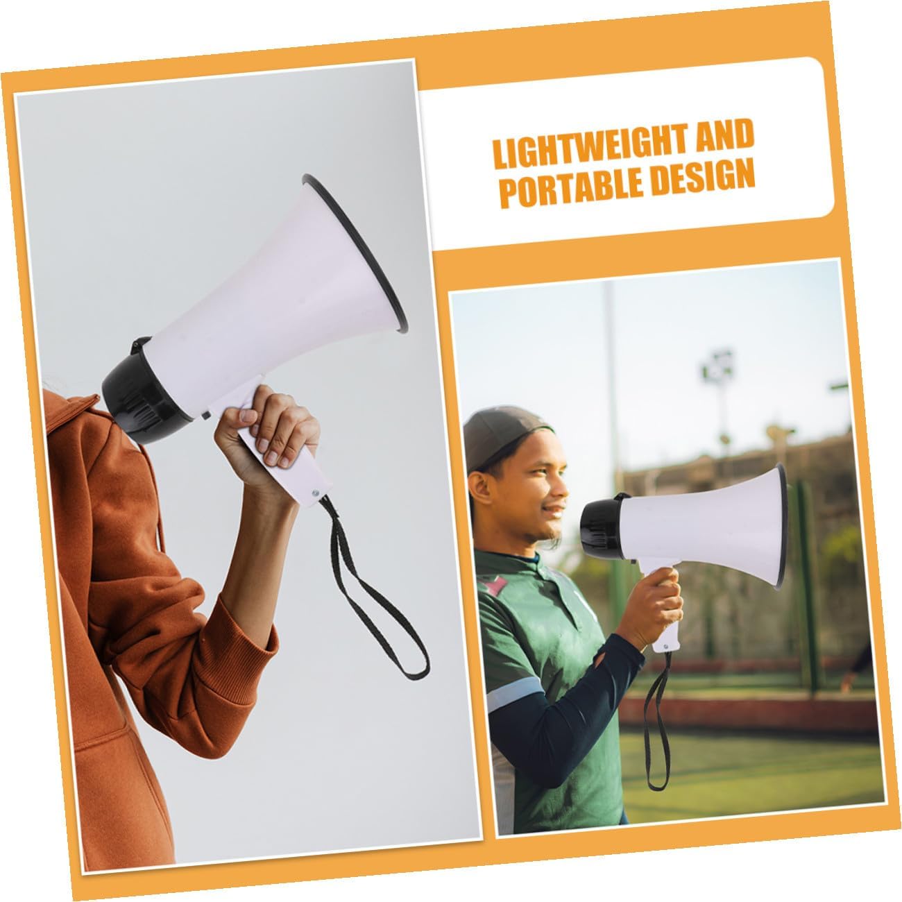 Package List 1 x loud-speaker 1 x battery 1 x cable Characteristics - Color: White -Material:Plastic -Product Info:Megaphone loudspeaker - Size: 22.00X13.80X13.80cm/8.65X5.42X5.42in -The speaker is convenient, ensuring reliable and stable sound output football cheering loudspeaker. -The lightweight design makes it easy to carry and suitable for any event or occasion loudspeaker. -It has versatile recording capabilities, allowing users to and record their own messages loudspeaker loud. -The handheld megaphone speaker provides clear and powerful sound, ensuring impact cheer megaphone for party. -It is energy-efficient and can be used for extended periods without draining the battery party loudspeaker.Goods Descriptionportable loudspeakers The unique design and craftsmanship ensure its popularity and practicality.convenient megaphone Using reliable materials, durable.practical megaphone This is your ! With this product, and you can have a more professional and enjoyable looking experience.plastic loudspeaker Do you need a durable handheld megaphone ? If so, take at this product