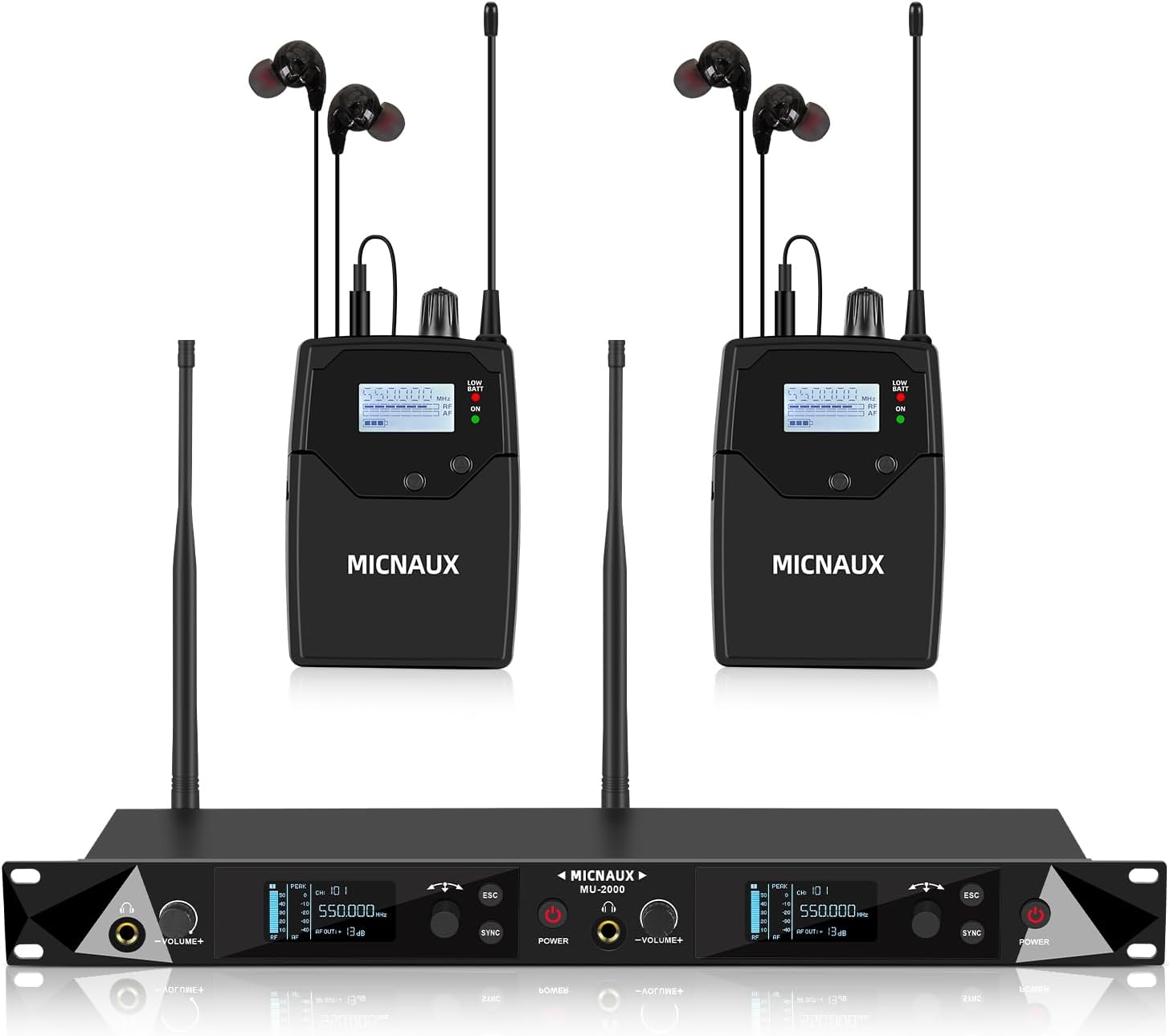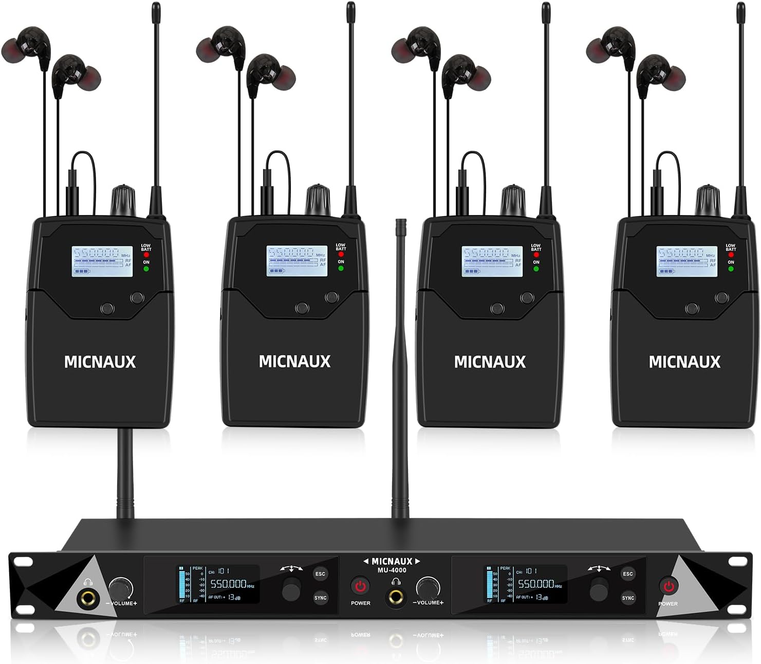 | BuiltIn Media | 1 x UHF mono transmitter, 8 x bodypack receivers, 8 x in-ear earphones, 2 x antennas, 1 x power adapter, 1 x user manual |